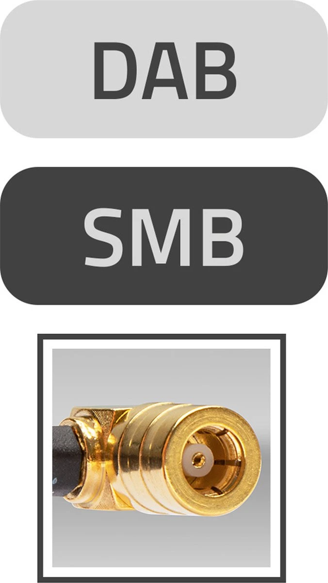DAB voorruitantenne voor Kenwood, JVC, Alpine, Pioneer en andere DAB autoradio’s met SMB aansluiting