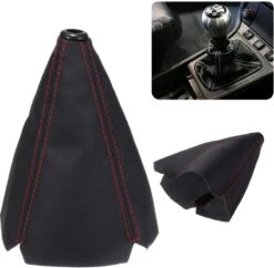 Universele Lederen Schakelpook – Versnellingspook – Cover Pookknop – 16 MM – Zwart/Rood