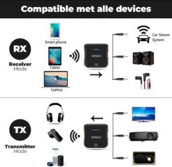 WiseQ Bluetooth Transmitter & Receiver | 2-in-1 Audio Adapter | TV, PC & Auto
