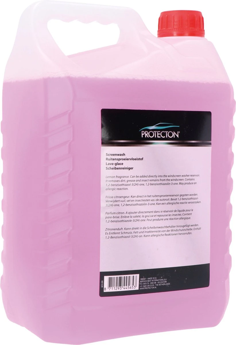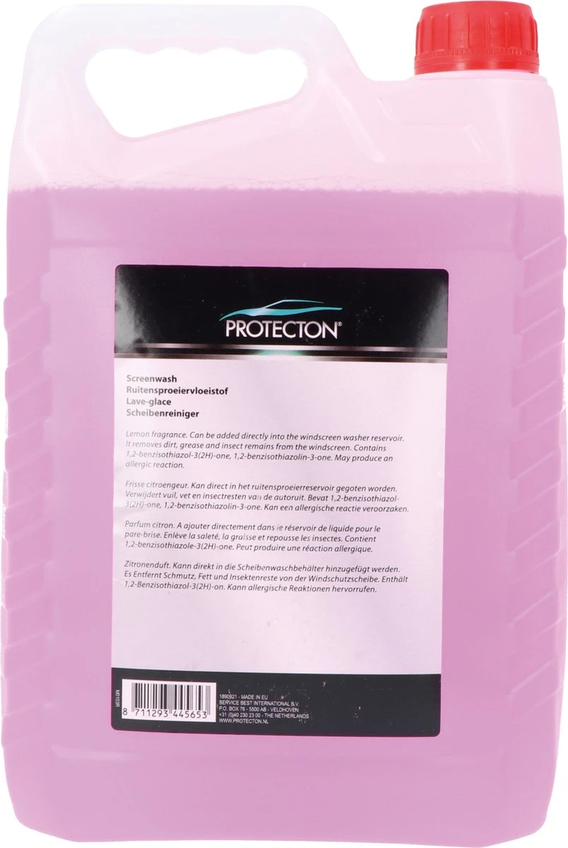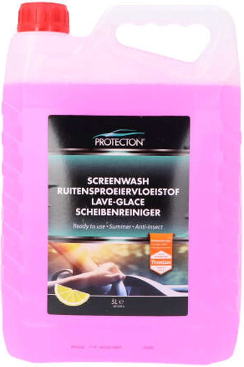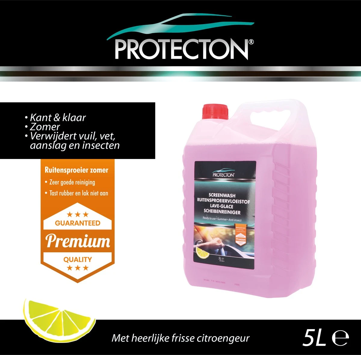 De Protecton ruitensproeiervloeistof verwijdert vuil, vet, aanslag en insecten zonder problemen van de autoruit en zorgt voor beter zicht. Laat geen strepen na en heeft een frisse citroengeur. Niet geschikt voor het gebruik in de winter. Inhoud 5 liter.