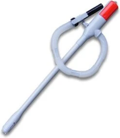 Met deze hevelpomp hevel je heel gemakkelijk de olie vanuit de tank in de kachel. Door de bovenkant in te duwen wordt de pomp in werking gezet.