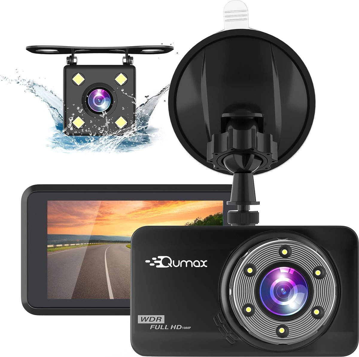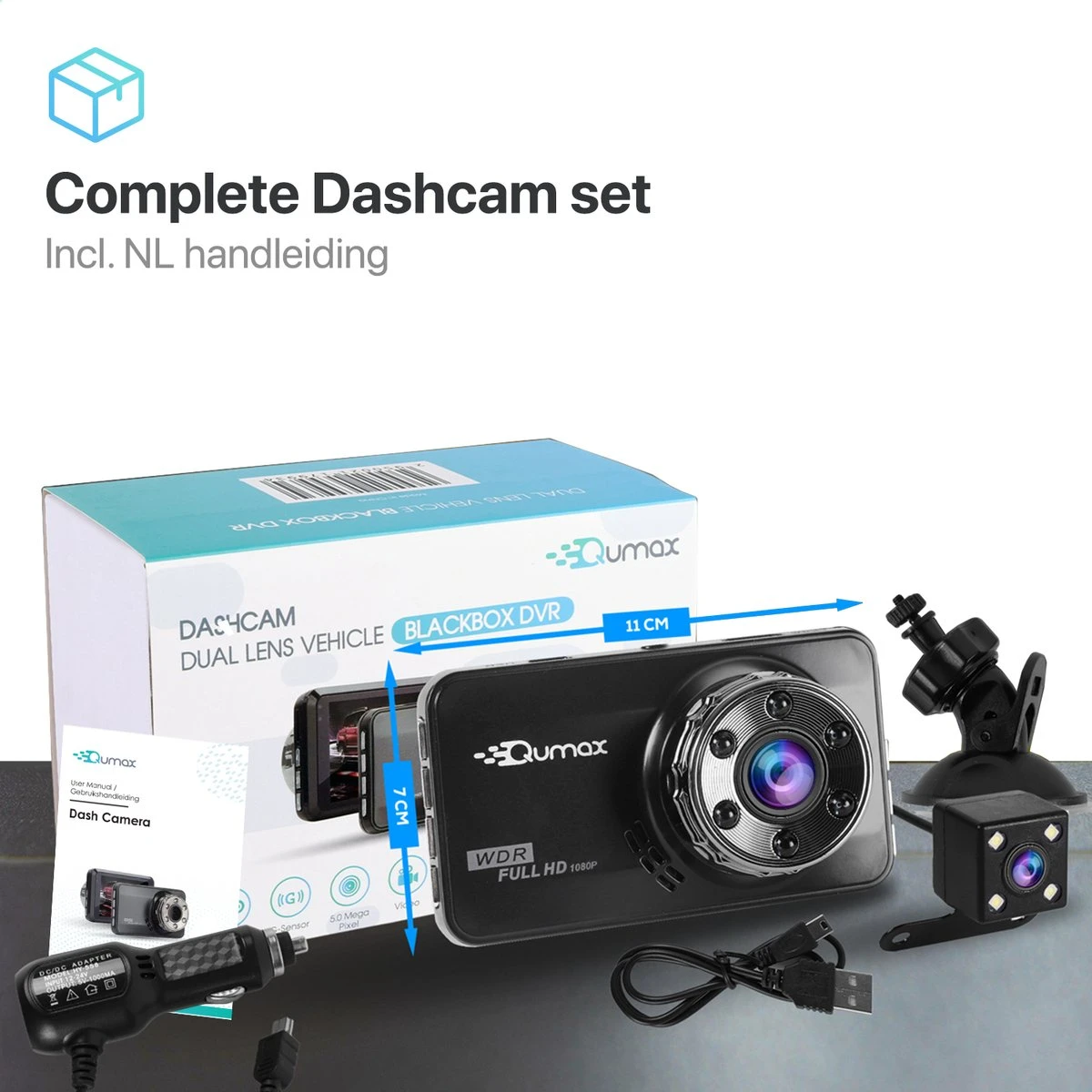 Met de dashcam van Qumax rijd je een stuk comfortabeler en kun je te allen tijde videobeelden van de verkeerssituatie opnemen. Bijvoorbeeld handig voor de verzekering wanneer er een ongeval of aanrijding heeft plaatsgevonden. De dashcam is uitgerust met een voor en achter camera en beschikt over handige functies zoals bewegingsdetectie, parkeerstand en G-sensor. Met een 170° wijdhoeklens en een hoogwaardig IPS-display is de Qumax dashcam een echte aanwinst.