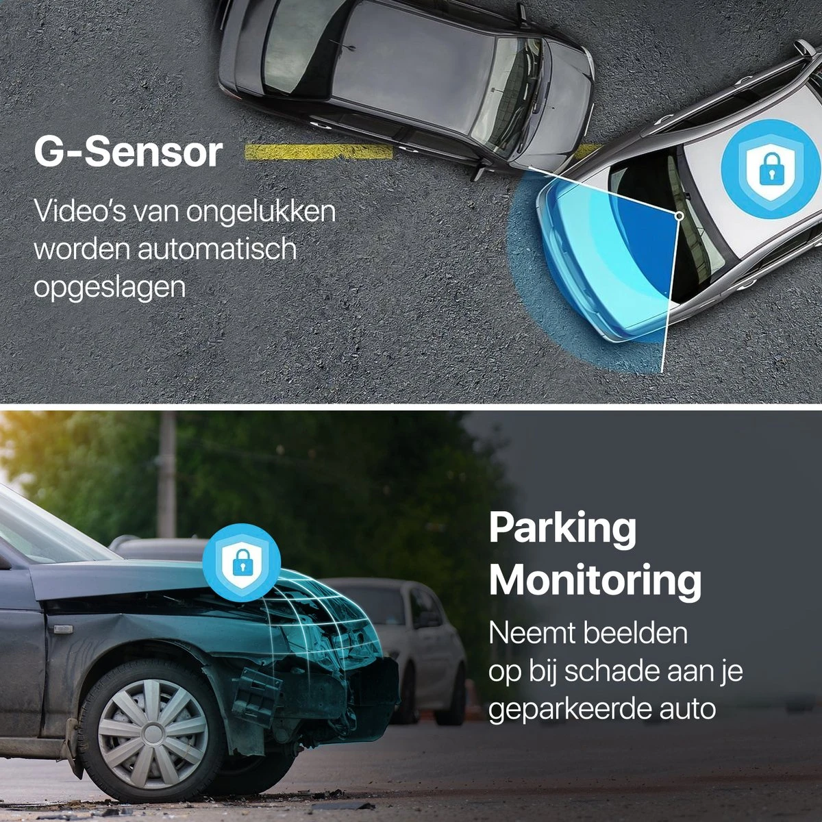 Wanneer je met je auto parkeert zal de dashcam automatisch naar parkeermodus schakelen. De dashcam staat dan in stand-by en zal beginnen met opnemen zodra er een schok/trilling wordt gevoeld. Op deze manier zullen belangrijke gebeurtenissen ook worden vastgelegd wanneer je niet aanwezig bent, bijvoorbeeld in het geval er iemand tegen je geparkeerde auto aanrijdt of schade maakt in een parkeergarage. Handig!