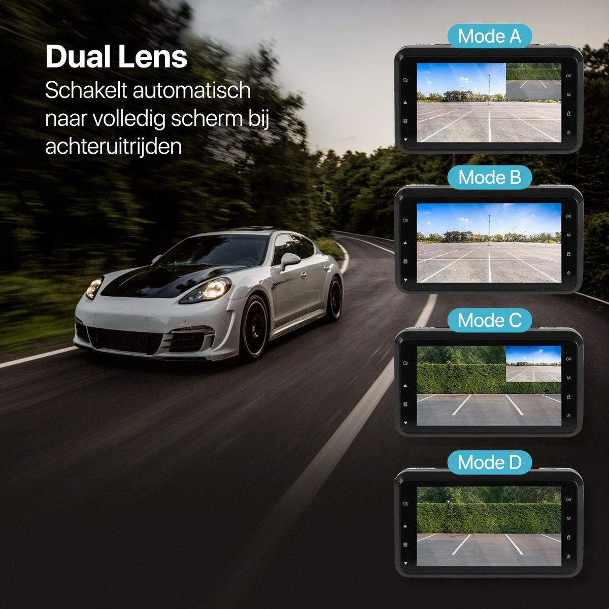 Met de dashcam van Qumax kun je tijdens het rijden zowel beelden van je omgeving aan de voor- als achterkant maken. Dankzij de Full HD-camera (1080P, 30 fps) is het bovendien mogelijk om haarscherpe beelden te maken. De dashcam is uitgerust met een hoogwaardig IPS-display waarop de beelden in hoog contrast en met een wijde kijkhoek (170°) worden weergegeven. Het menu is bovendien zeer gebruiksvriendelijk en kan op verschillende talen worden ingesteld, waaronder Nederlands en Engels.