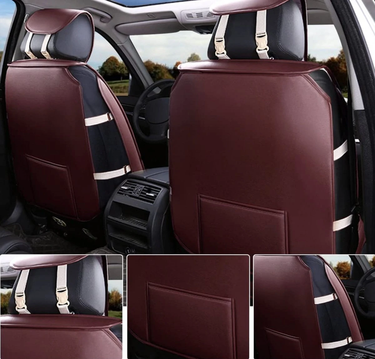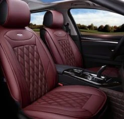 Service96 – Universele Pasvorm PU Lederen Autostoelhoes – Hoge Rugleuning Kuipstoelhoes – Autostoelbeschermer – 3D – Past Op De Meeste Auto’s – Kliksysteem – 2 Stuks – Rood