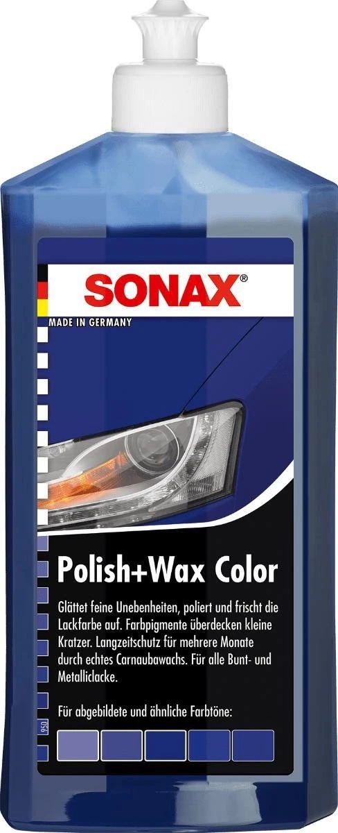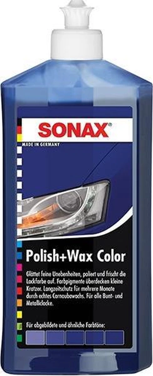 Heb je een blauwe auto en ben je op zoek naar het beste poetsmiddel? SONAX Polish & Wax Blauw bevat pigmenten die blauw van kleur zijn waardoor de helderheid, warmte en intensiteit van de blauwe lak verhoogd wordt. De blauwe pigmenten in de wax voegen kleuren toe waardoor je het beste haalt uit blauwe autolak!
