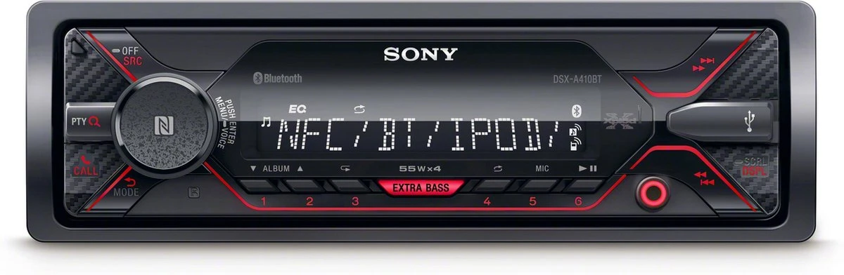 Sony DSX-A410BT. Kleur van het product: Zwart, DIN-norm: 1 DIN, Maximaal vermogen per kanaal: 55 W. Ondersteund audioformaat: FLAC,MP3,WMA. Beeldscherm type: LCD. Bluetooth-profielen: A2DP,AVRCP,HFP,OPP,PBAP,SPP. Ondersteunde frequentiebanden: AM,FM