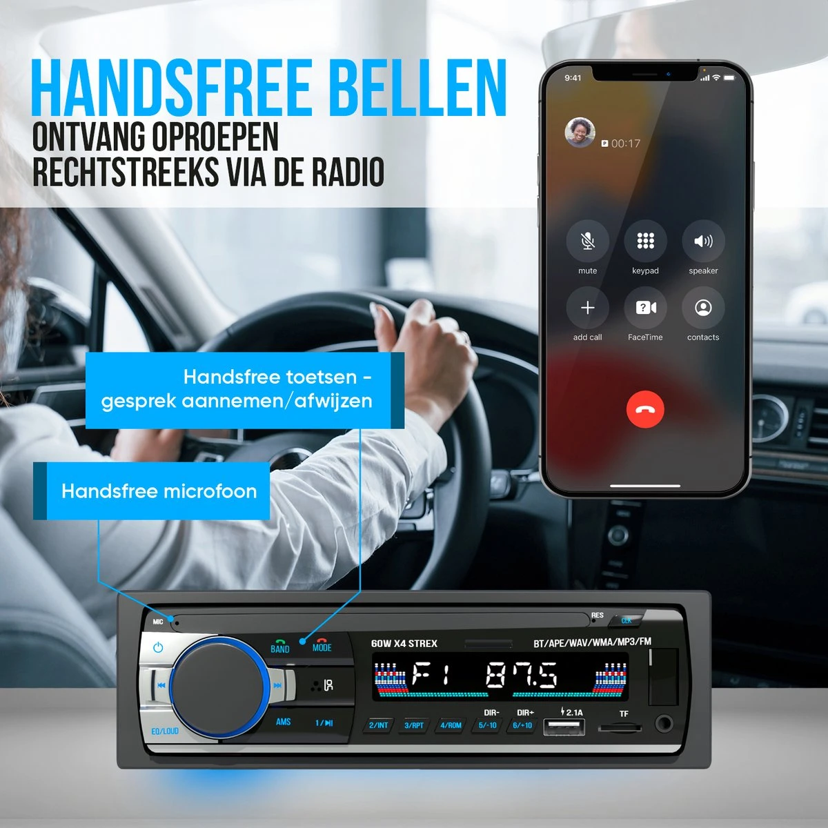 Een nieuwe autoradio met alles erop en eraan? De Strex auto radio maakt jouw muzikale dromen waar. Speel je favoriete afspeellijsten af middels bluetooth, geniet van kraakhelder geluid via FM radio en laad je telefoon op met de USB poort. Vanaf nu kom je altijd vrolijk de auto uit!