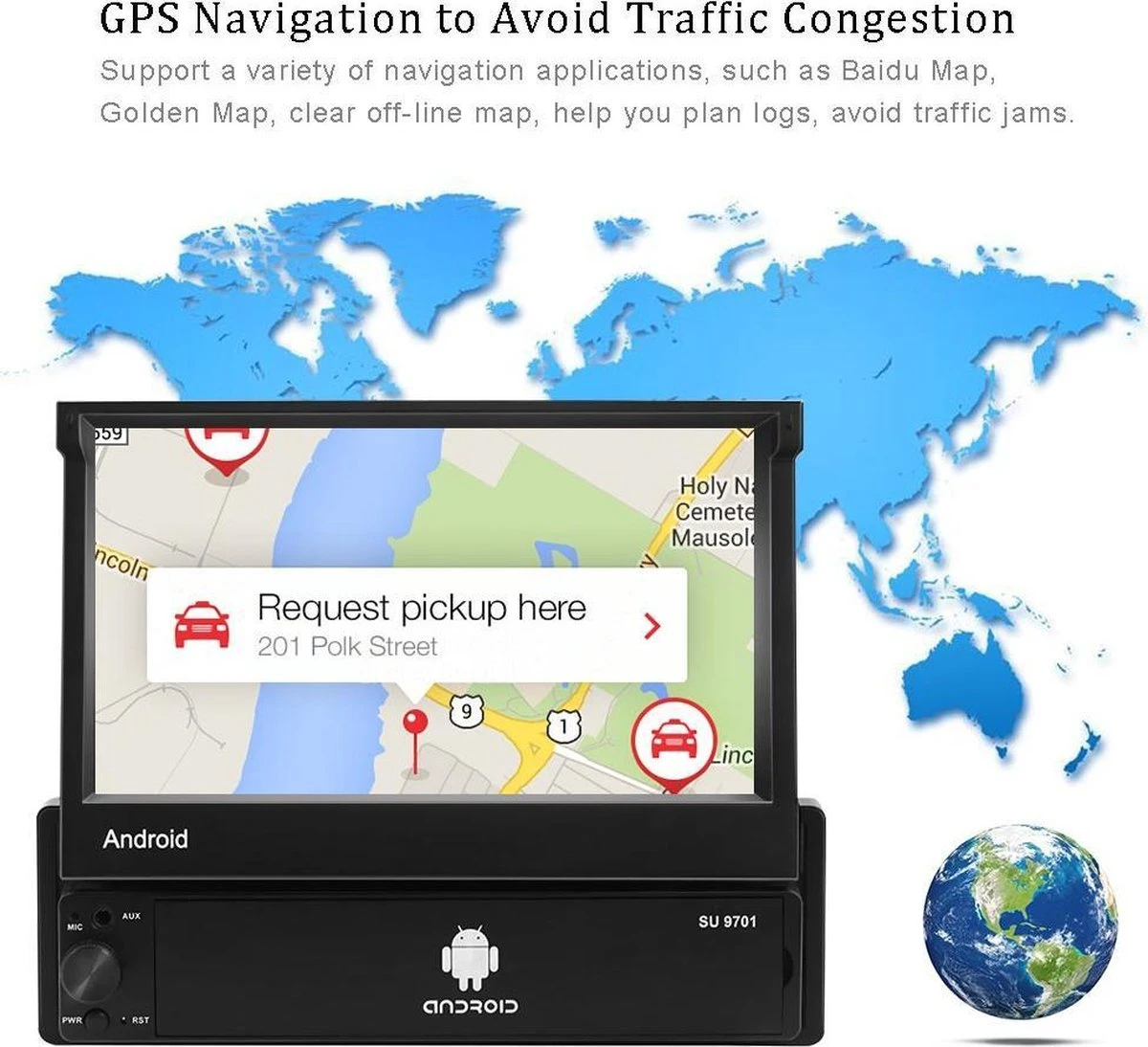 De autoradio is heel gemakkelijk te bedienen met de bijgeleverde afstandsbediening en stuurwiel bediening. Daarnaast kunt u de autoradio ook bedienen met de knoppen op het paneel zelf. U geniet makkelijk én snel van uw favoriete muziek.