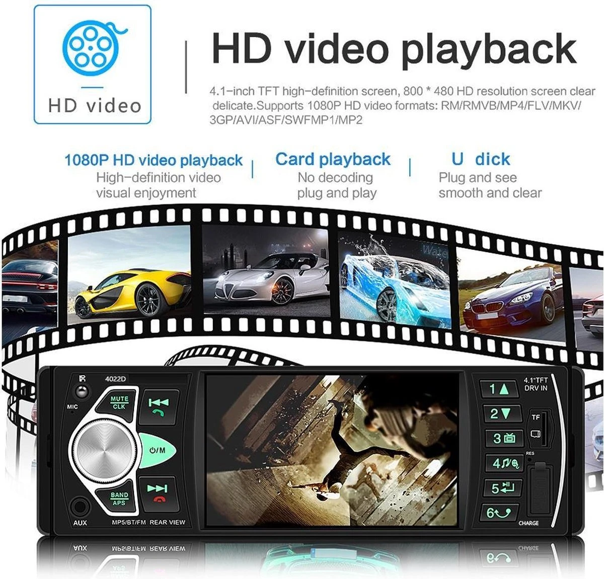 Het scherm en de simpele bediening zorgt voor optimaal plezier van de radio in de auto. Speel uw favoriete nummers af via Bluetooth, MP3, MP4 of SD of luister naar de radio. Ook kunt u zelfs HD video’s bekijken via de radio als uw telefoon is aangesloten.