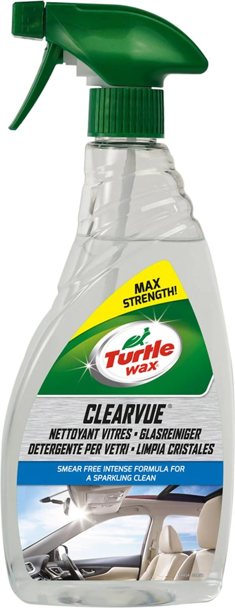 Turtle Wax GL ClearVue Glasreiniger heeft een maximaal reinigend vermogen voor al het (straat)vuil en maakt streepvrij schoon. Verwijdert tabaksvlekken, vingerafdrukken en vuil. Zowel binnen als buiten te gebruiken op alle soorten glas of spiegels.