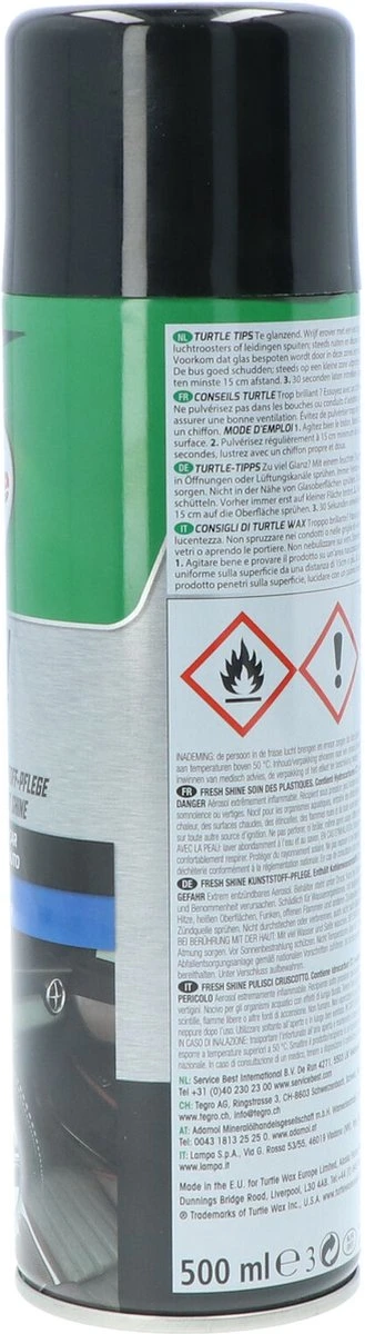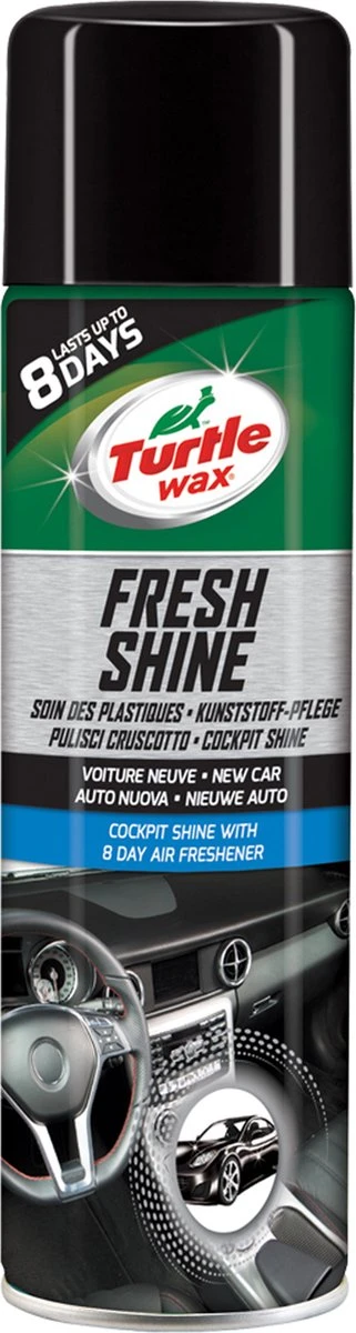 De Turtle Wax GL Fresh Shine New Car is het ultieme product voor het onderhoud van alle kunststof onderdelen van het interieur. Werkt reinigend, antistatisch en laat het interieur van de auto weer glanzen! Tevens maskeert de New Car geur onaangename geuren.