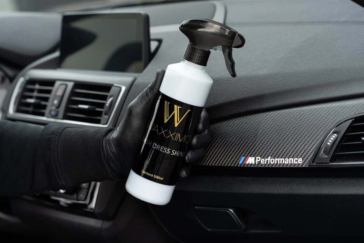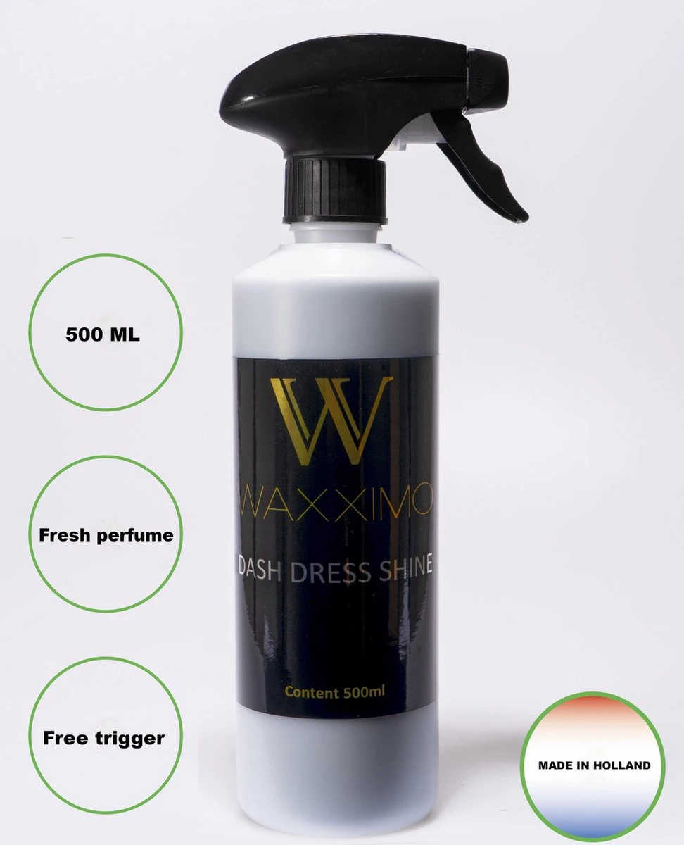 Waxximo Dash Dress Shine brengt het interieur van uw auto, boot, camper en caravan weer terug in nieuwstaat. Deze Dress laat een glanzende maar antistatische laag achter op kunststof delen. Hierdoor hecht het vuil en stof minder snel aan. En is uw interieur langdurig beschermt tegen weersinvloeden. Het interieur zal weer heerlijk fris ruiken door de toegevoegde geur aan deze dress. Voor het beste resultaat het interieur eerst voor reinigen met Waxximo Interior Cleaner.