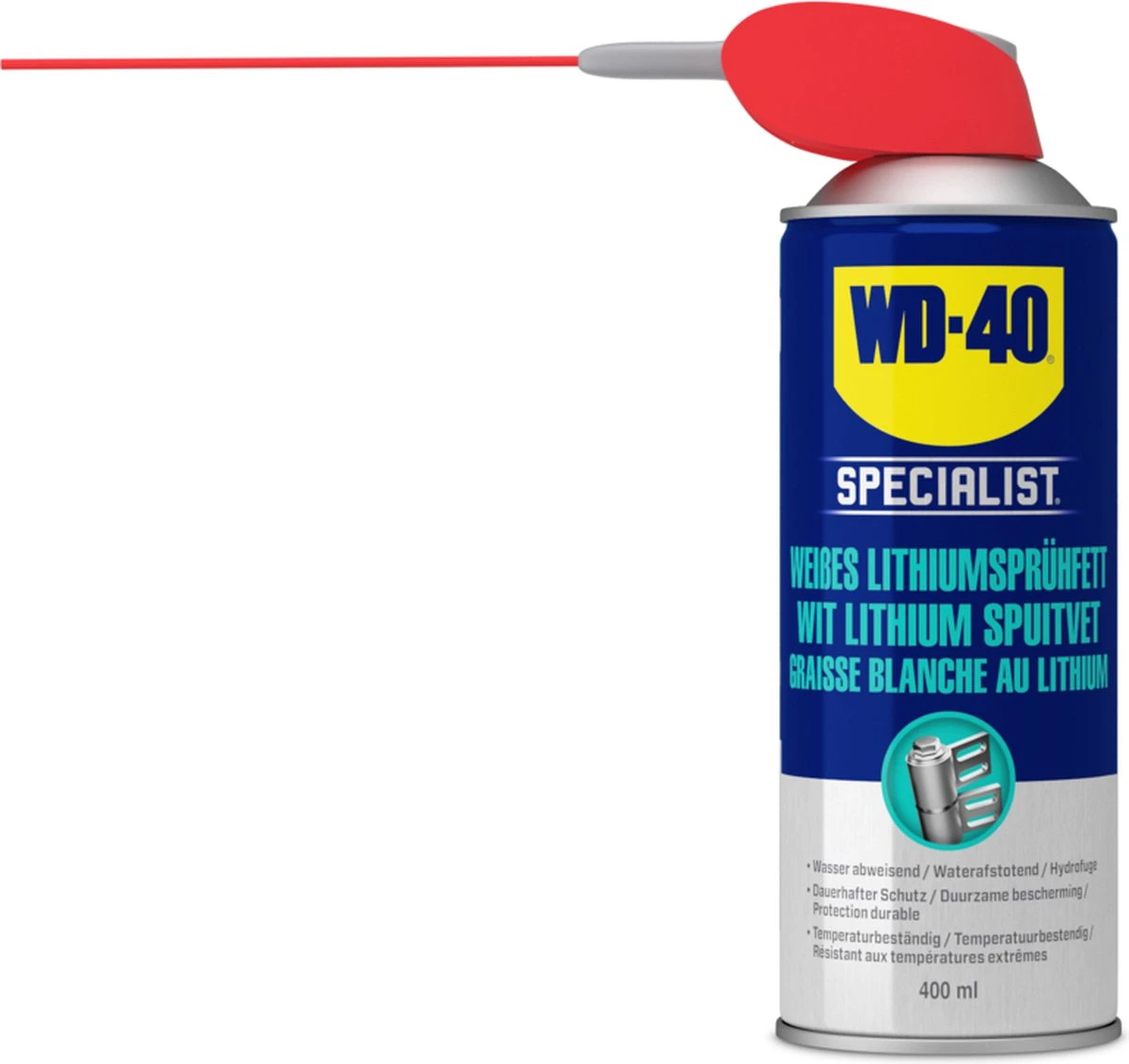 WD-40 Specialist Wit Lithium Spuitvet. Vertrouwde kwaliteit, speciaal voor metaal-op-metaal.