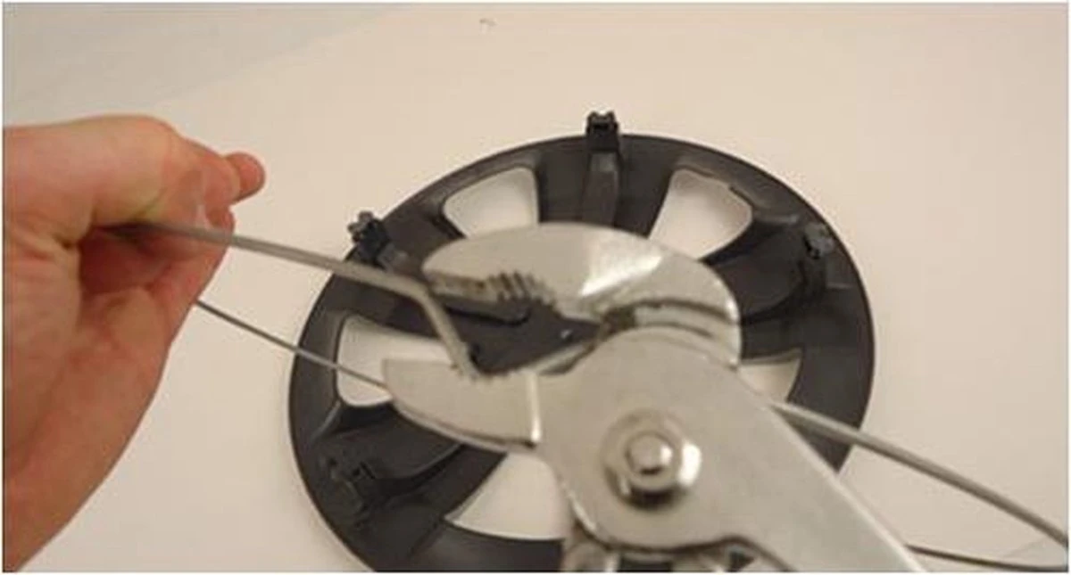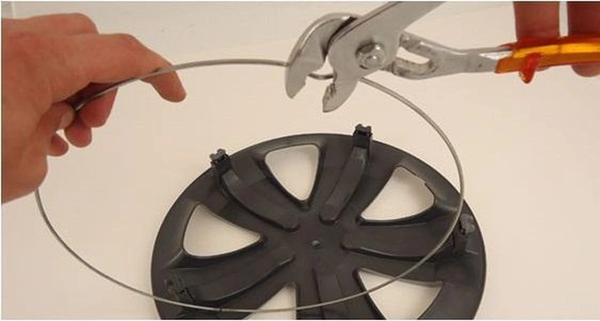 De eerste paar clips kun je makkelijk vastdrukken met de hand. Er rest enkel nog het vastzetten van de laatste clip. Dit gaat het makkelijkst met een platte schroevendraaier. Duw de clip voorzichtig naar binnen tot de wieldop op de velg schuift. Mogelijk moet je de wieldop nog met de hand verder aandrukken.