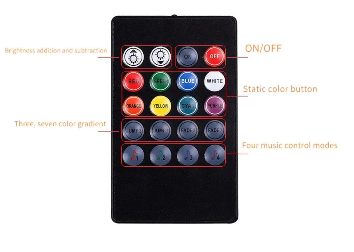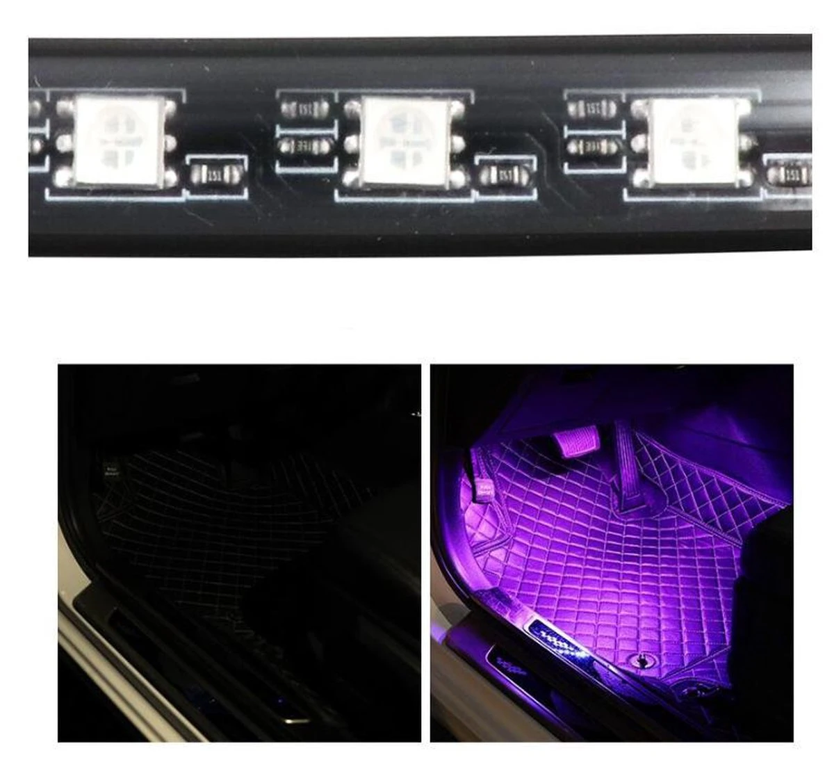 Geef uw auto een moderne look met deze 4 RGB led strips met afstandsbediening!U kunt de LED auto interieur verlichting RGB bedienen met de afstandsbediening.